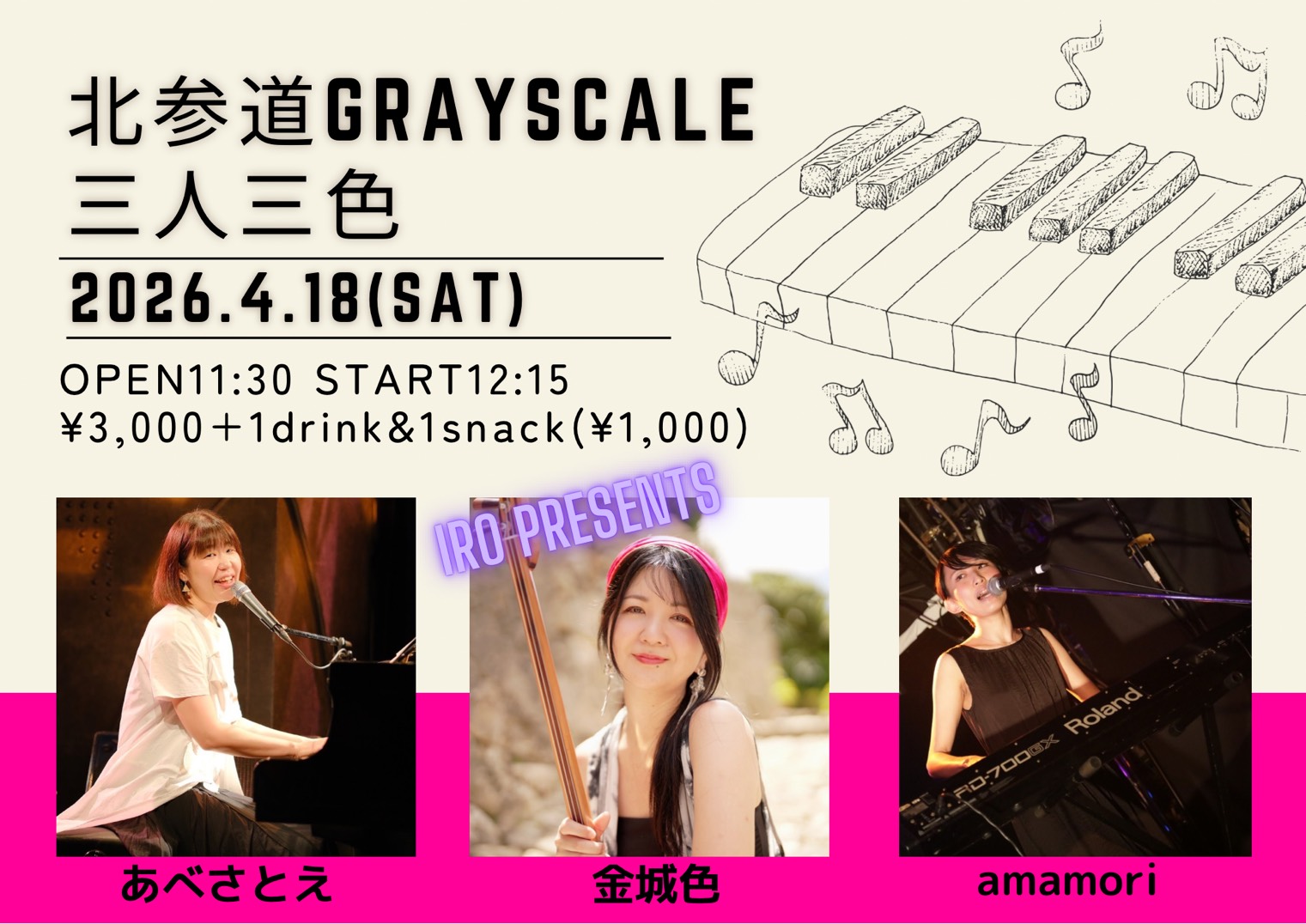 北参道grayscale open11:30/start12:15 ¥3000 + 1drink&1snack(\1000) 出演 amamori、金城色、あべさとえ 出演時間 12:55頃 金城色さんにお声がけいただきまして、お昼のスリーマンに出演します!うれしいな! 会場のgrayscaleは何回か出演させていただいた上のgrapesの系列だそうでシックでおしゃれな店内。 この日はキーボードです。正面からのあまもりはいかが? 来場予約